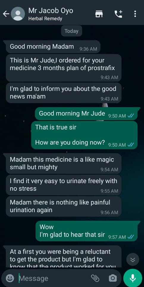 The truth is prostate enlargement is not something you need to joke with…….. a lot of people have died and lost their loved ones, as a man once you are above 30 you need to take your prostate health serious….. before it too late